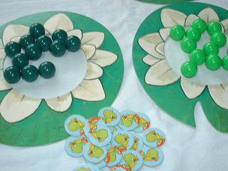 それぞれ12個のボールを持ち、スイレンの葉の中に入れておきます。
